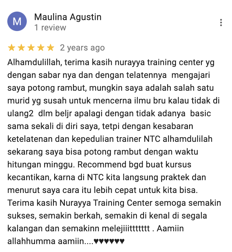 Kami juga memiliki Komunitas Owner Salon Spa dengan anggota di suluruh Indonesia, sehingga kita dapat berbagi informasi, peluang, dll. satu sama lain terkait Bisnis Kecantikan Muslimah.