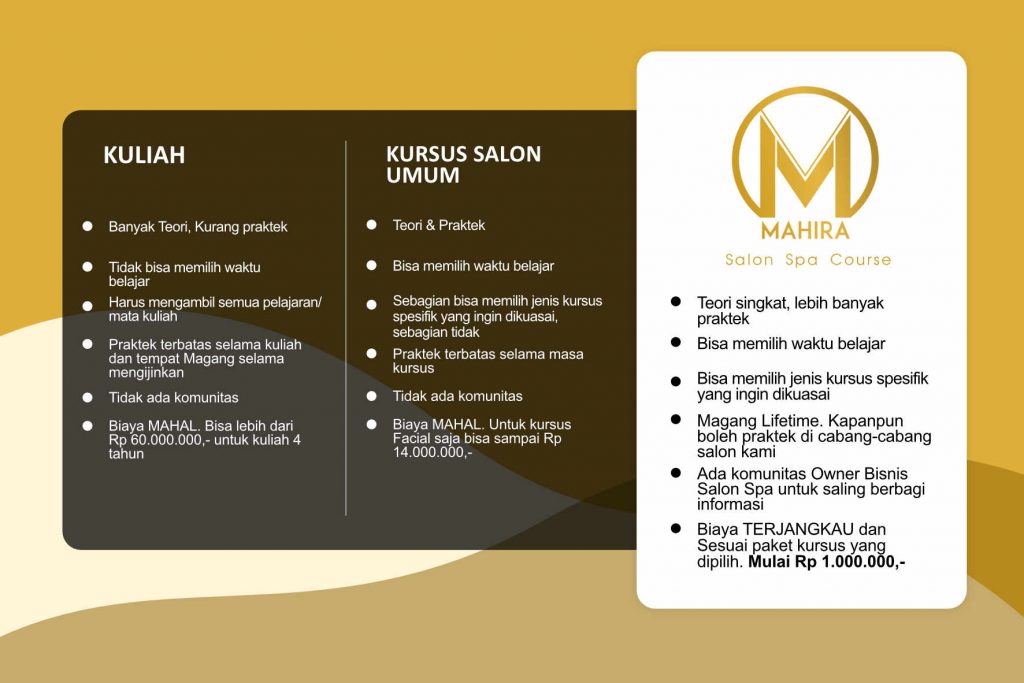 Di Mahira Anda bisa mengikuti Kursus Kecantikan dengan waktu Lebih Singkat daripada Kuliah dan Harga Lebih Terjangkau dari Kursus Kecantikan lainnya.